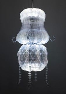 In Black & Light, stark elegance met experimental materiality. Anicka Yi’s animatronic, light-filled sculptures with glowing tendrils captivated audiences alongside Lee Bae’s gestural brushwork in charcoal ink. Rosa Barba’s kinetic “cinematic painting”—constructed from illuminated, moving film—shared a visual conversation with Philippe Parreno’s flickering black lamp installation. Works by Etienne Chambaud, Ryan Gander, Prabhavathi Meppayil, and Julia Scher explored the interplay of materiality, reflection, and perception, each subtle in presence yet conceptually layered.